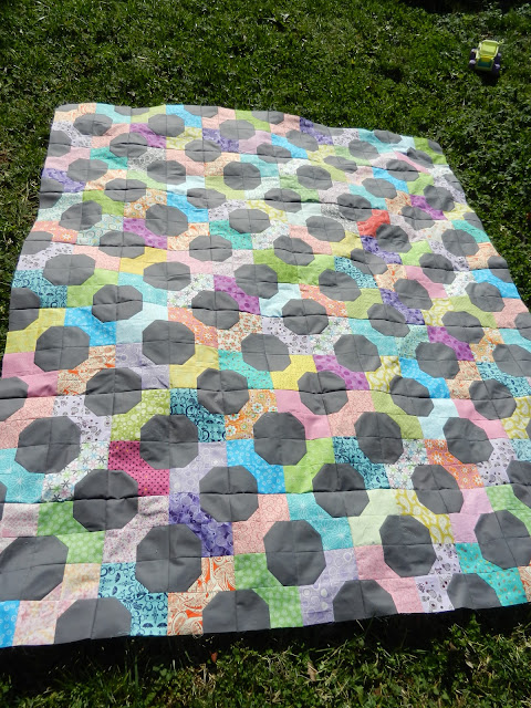 The front is quilted with a basic zig zag that follows the geese, and the back is a simple stipple.